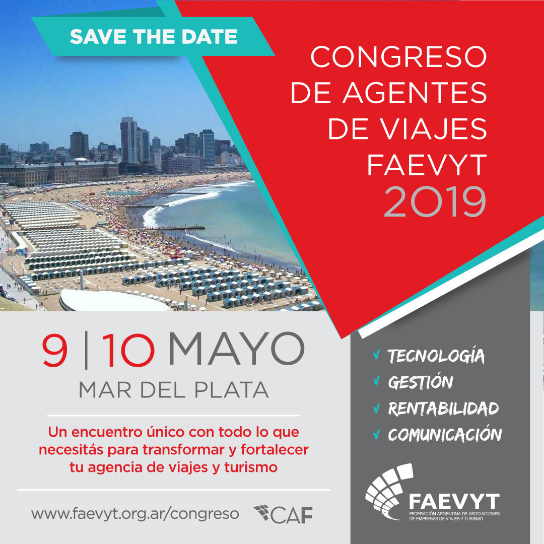 El 9 y 10 de Mayo en Mar del Plata se realizará el Congreso de Agentes de Viajes FAEVYT 2019, en el encuentro los agentes tendrán la posibilidad de conocer nuevas herramientas que les permitan hacer crecer más su agencia.